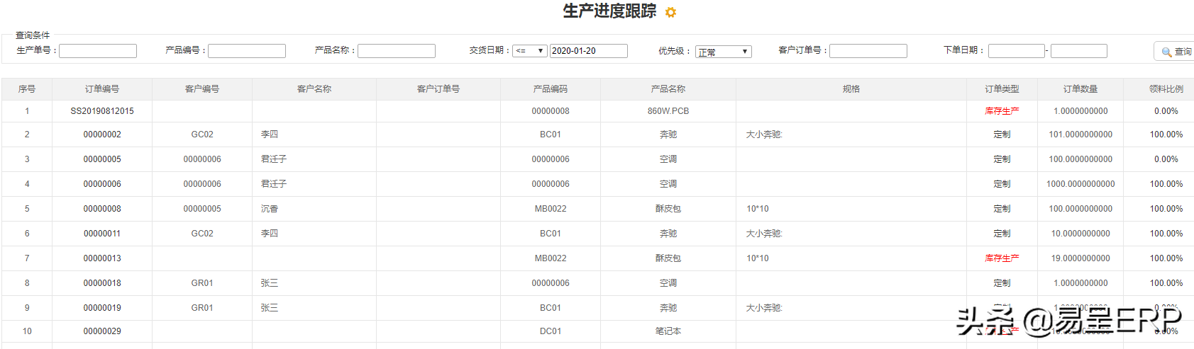 ERP系统-生产管理软件中生产进度跟踪怎么查?--广州易呈erp软件