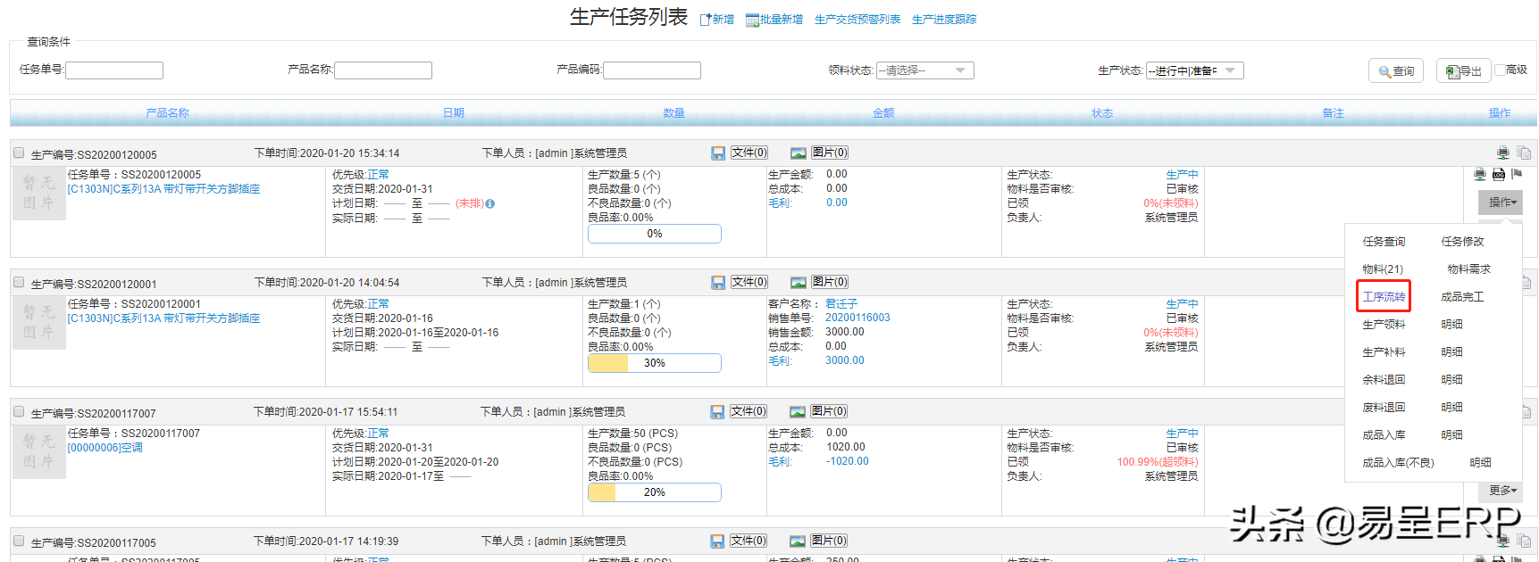 清远易呈erp软件-生产管理系统-在制品生产跟踪查询怎么操作?