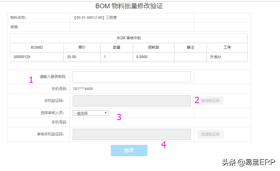 注意:BOM物料的批量修改需要绑定微信公众号