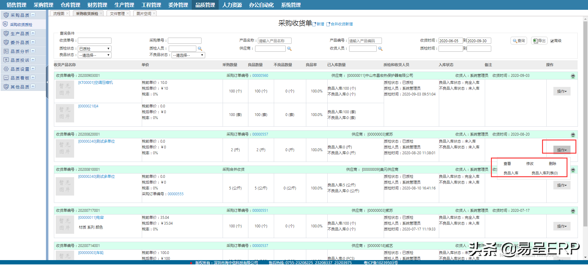 SCM供应链系统采购质检-来料检验-QC管理软件哪个好用?---青岛易呈erp软件容易用起来