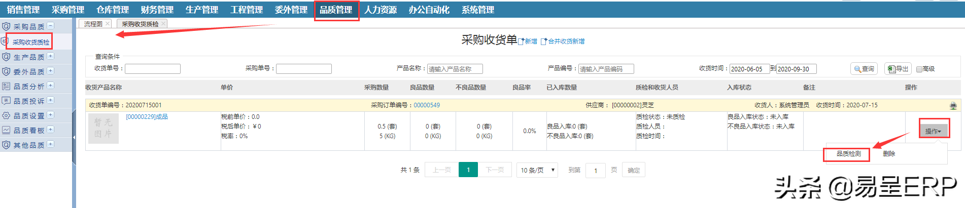 采购收货质检,对已经进行采购收货的产品进行质检 (品质管理-采购品质-采购收货质检)